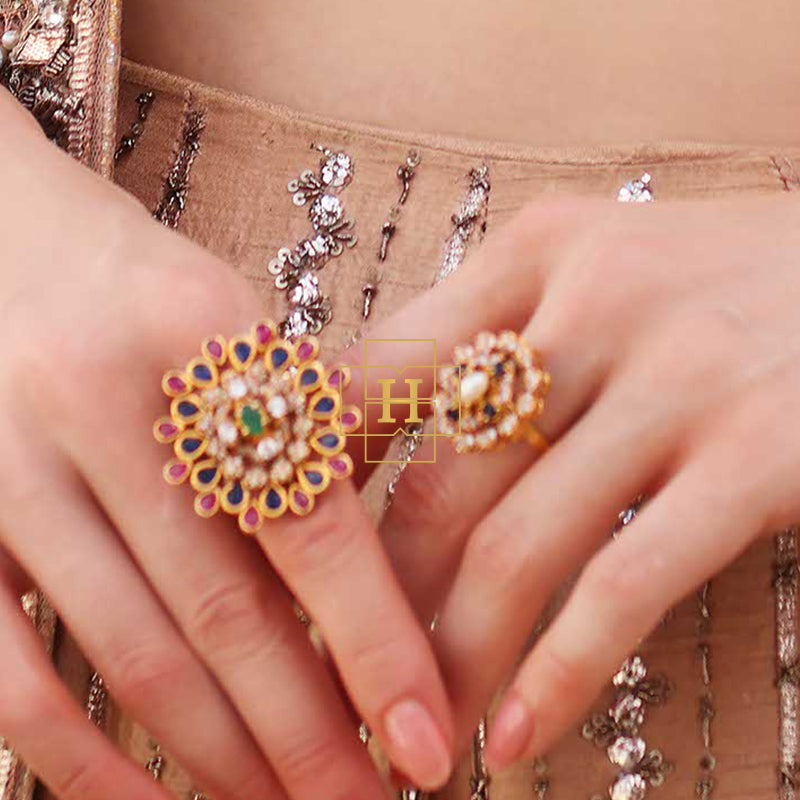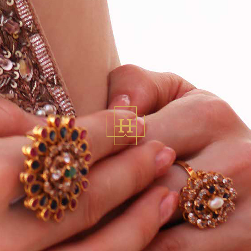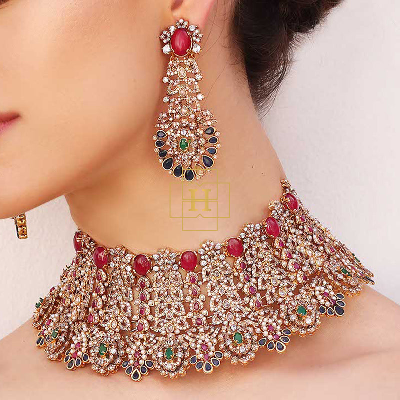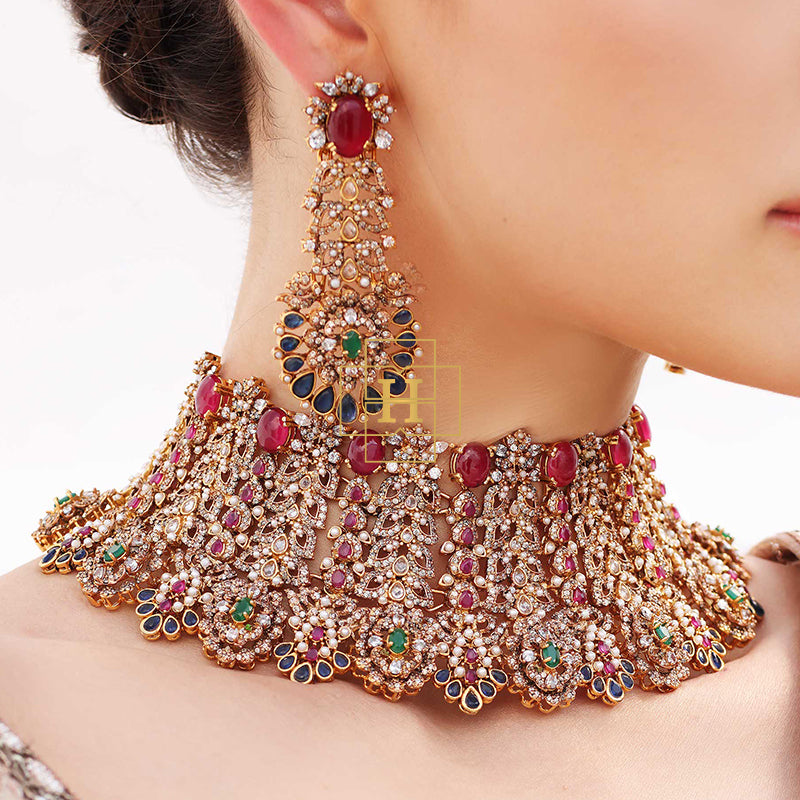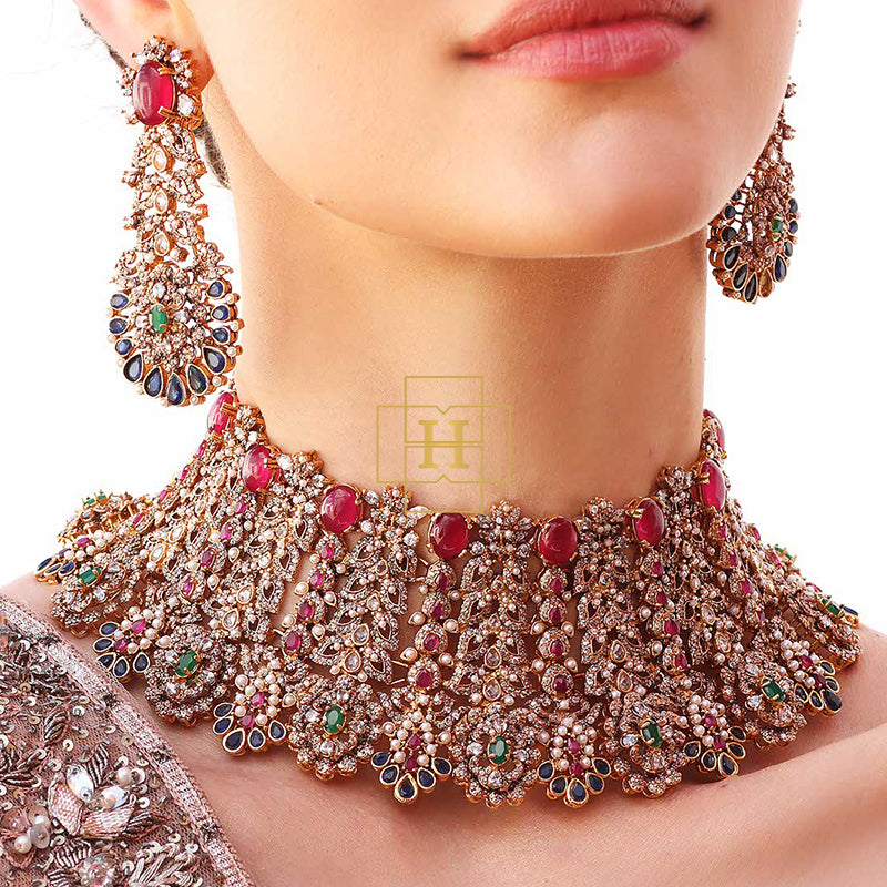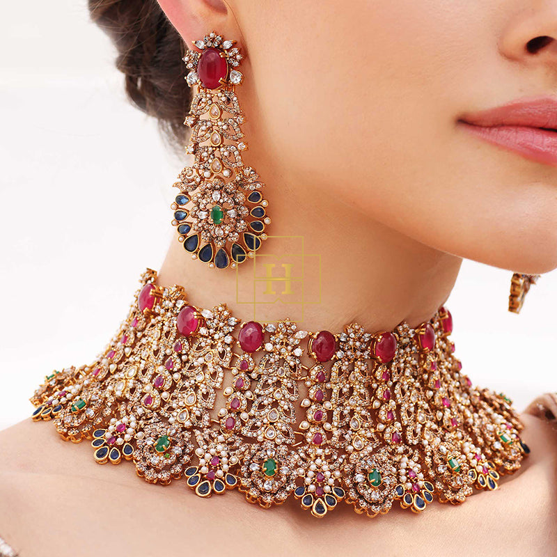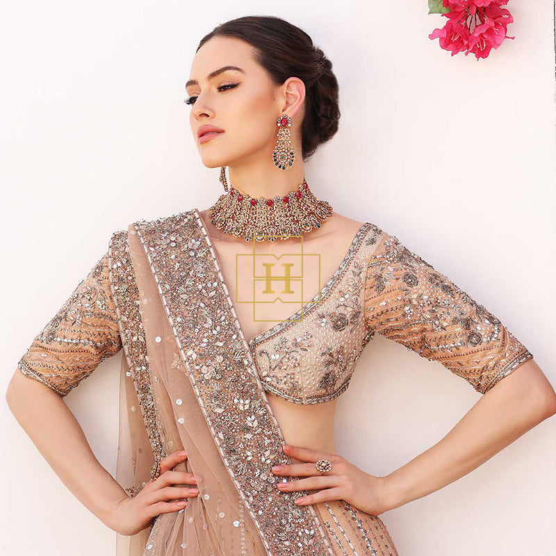 Crafted for refined taste, Hamna Amir jewelry features the brilliance of champagne zircon, rich ruby, emerald, sapphire, luminous pearls, and classic polki zirconic—perfect for statement luxury.