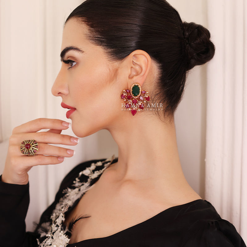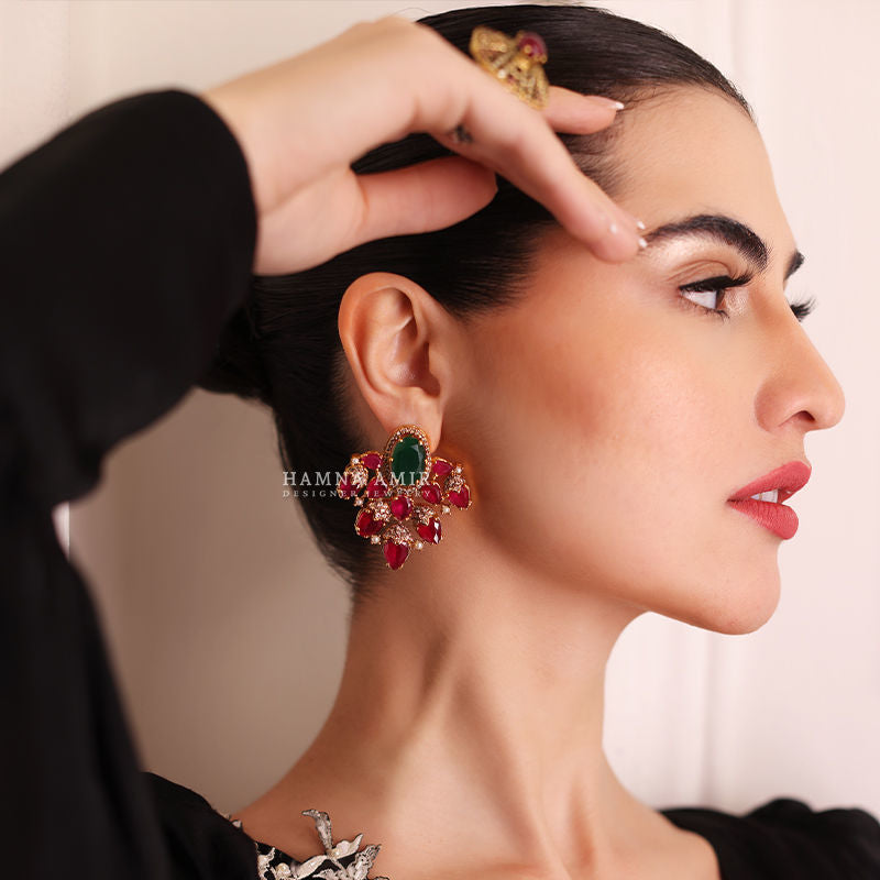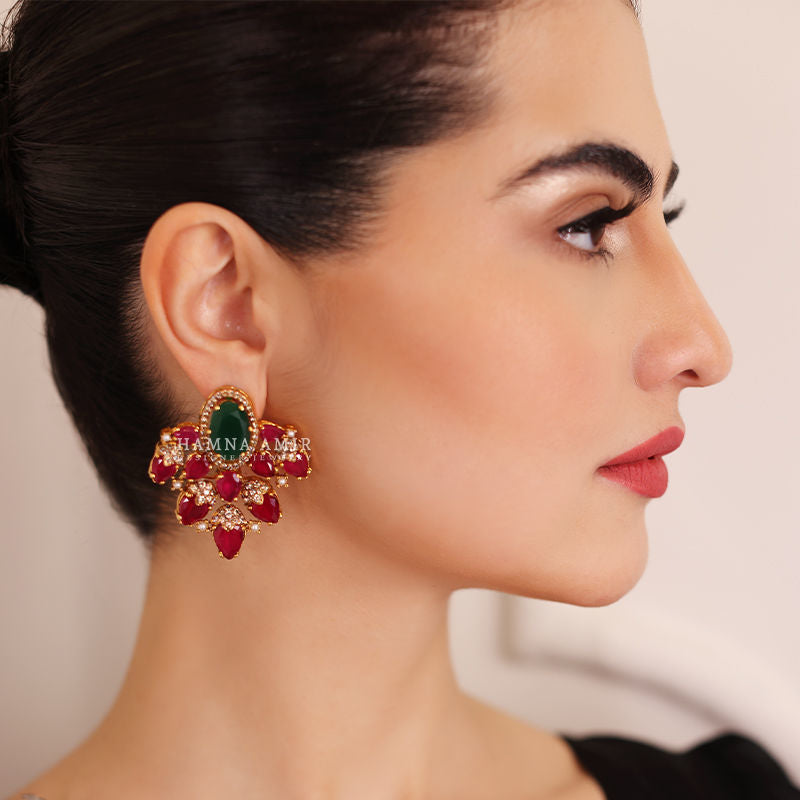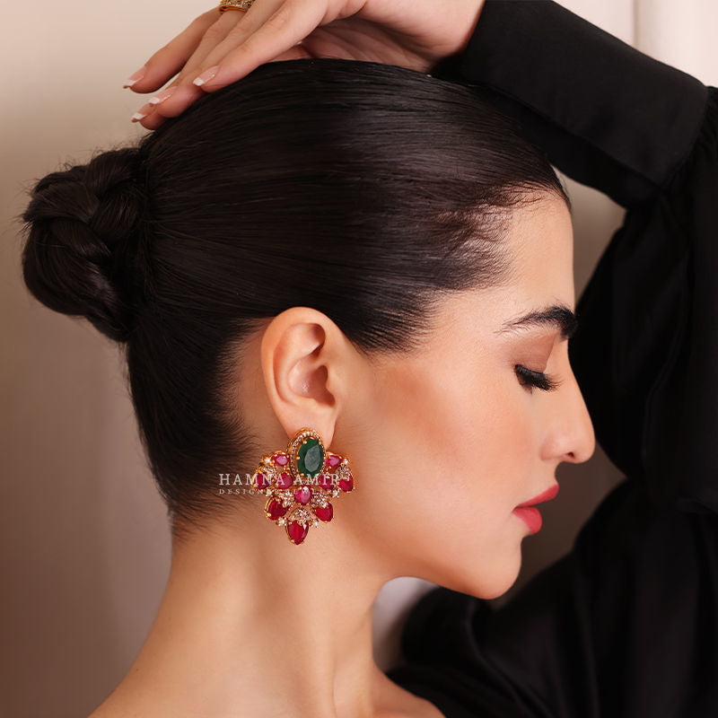 A statement pair of ear studs that dances with intricate designs and mesmerizing sparkle, leaving a trail of beauty wherever you go